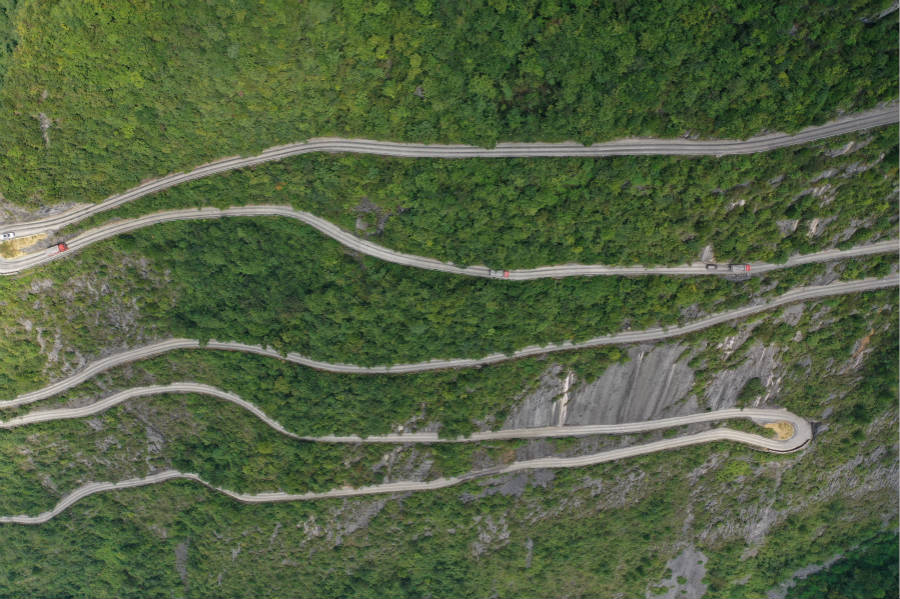 Aerial photo taken on Sept. 1, 2020 shows a view of the breathtaking "sky road" on the cliff in Enshi, in China's mountainous Hubei Province. The road looks like a jade belt in the mountains, and is known for its harrowing twists and turns. The daunting “sky road” shows the tremendous effort it took for local villagers to complete the construction, and their desire to connect with the outside world. The road attracts large numbers of driving enthusiasts from miles around.(People's Daily Online/Chen Bowen)