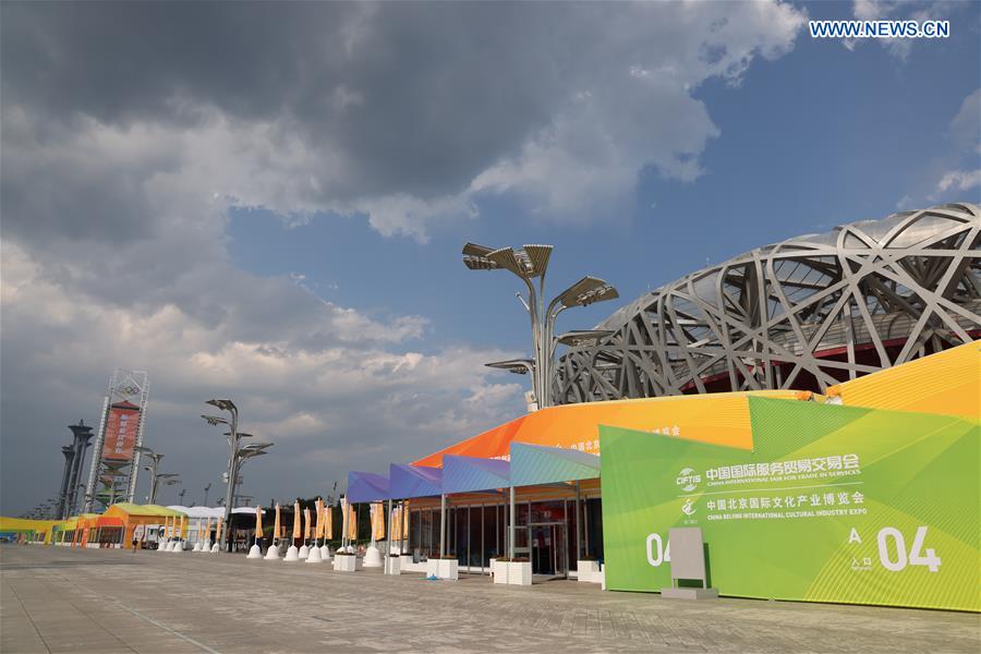 Photo taken on Sept. 2, 2020 shows the outdoor exhibition area of the China International Fair for Trade in Services (CIFTIS) in Beijing, capital of China. The CIFTIS is to be held from Sept. 4 to 9. (Xinhua/Xing Guangli)