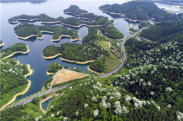 Picturesque Qiandao Lake and Chunyang Highway in Hangzhou's Chun'an county. [Photo from China Daily]