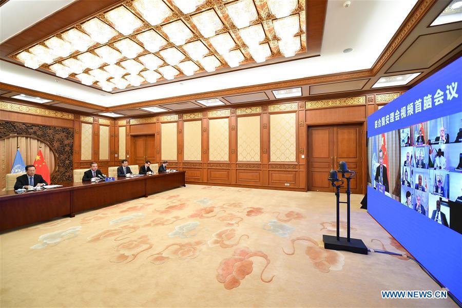 Wang Yi, special representative of Chinese President Xi Jinping, also Chinese state councilor and foreign minister, attends a video meeting of world leaders held by the UN Security Council in Beijing, capital of China, Sept. 24, 2020. (Xinhua/Li Xiang)