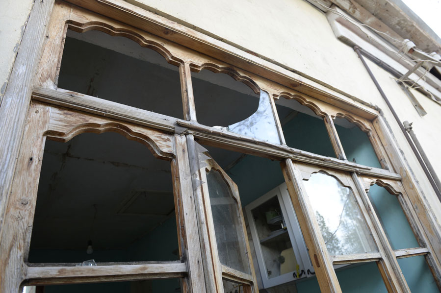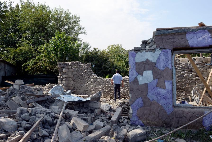 Photo taken on Sept. 29, 2020 shows a house damaged in the clashes between Armenian and Azerbaijani forces in the Tartar district bordering the Nagorno-Karabakh region. (Photo by Tofik Babayev/Xinhua)