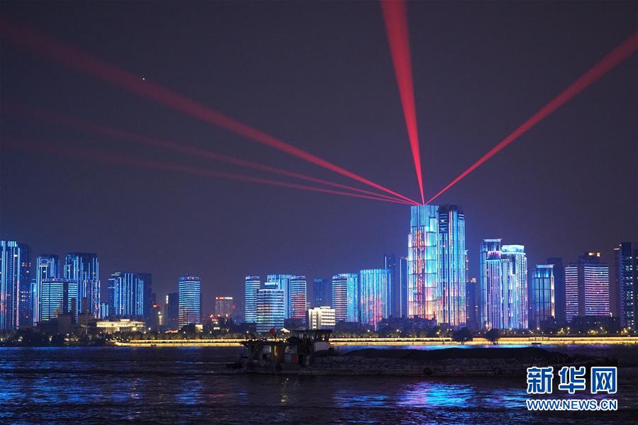 A light show in Wuhan on Sept. 30, 2020. (Photo/Xinhua)