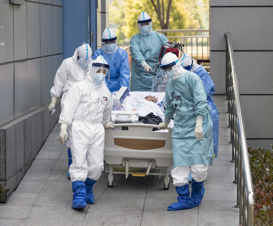 Medical workers transfer a COVID-19 patient in severe and critical condition to the Intensive Care Unit (ICU) ward at the Zhongfaxincheng campus of Tongji Hospital affiliated to Huazhong University of Science and Technology in Wuhan, central China's Hubei Province, April 12, 2020. (Xinhua/Shen Bohan)