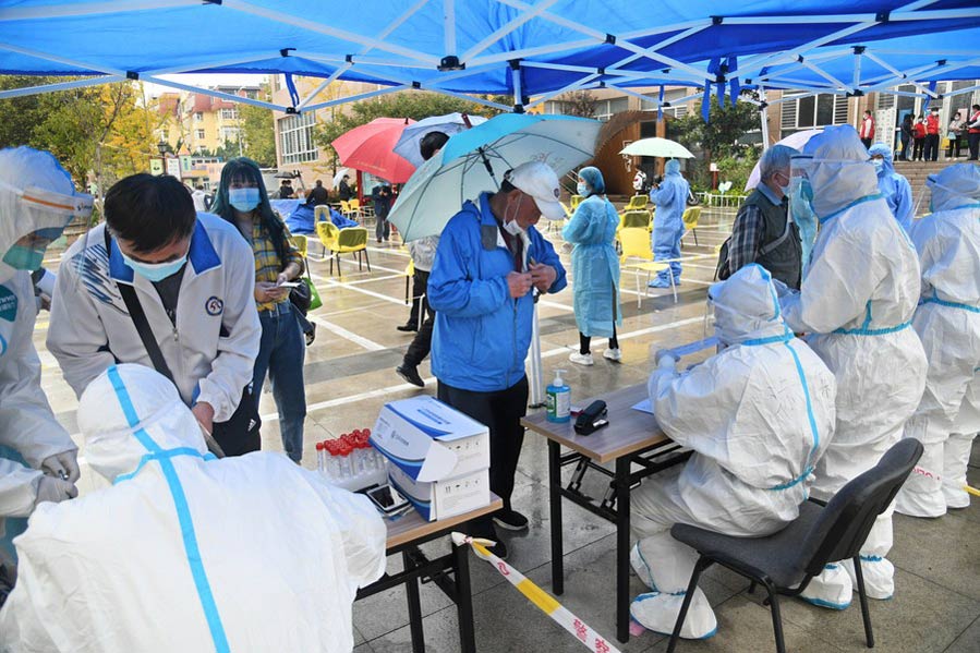 To ensure the citywide testing can be completed in five days, five cities in Shandong Province, including Zibo, Yantai, and Rizhao, have joined hands with Qingdao to help conduct nucleic acid sampling and testing, and more than 1,200 people have been dispatched from outside to the city for assistance, said Chen Wansheng, an official with the municipal government of Qingdao.