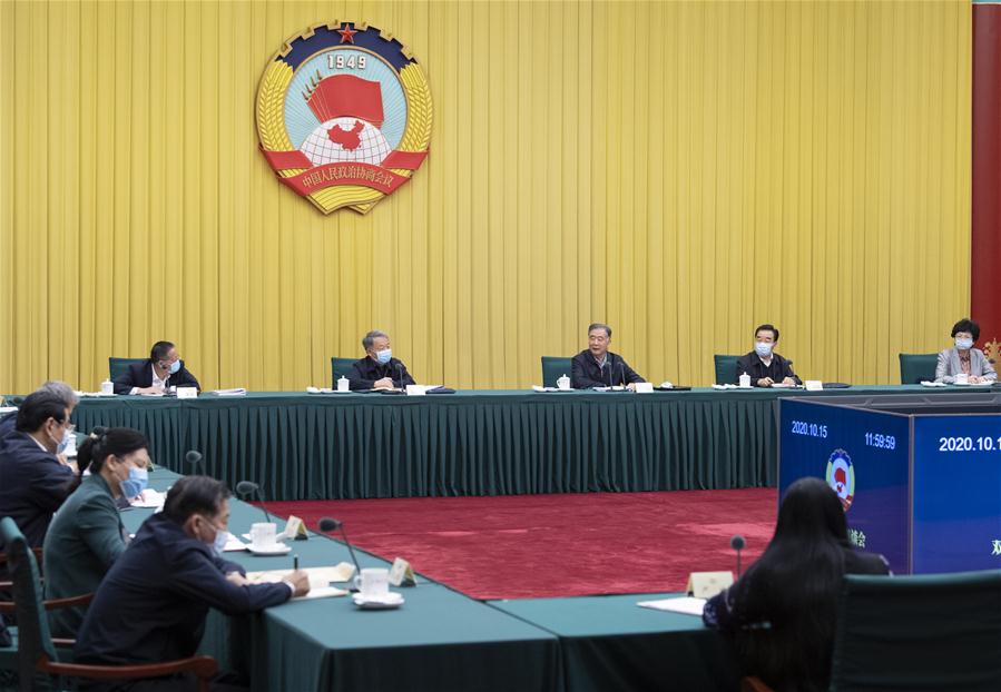 Wang Yang, a member of the Standing Committee of the Political Bureau of the Communist Party of China Central Committee and chairman of the Chinese People's Political Consultative Conference (CPPCC) National Committee, presides over the 41st biweekly seminar held by the 13th CPPCC National Committee in Beijing, capital of China, Oct. 15, 2020. (Xinhua/Gao Jie)