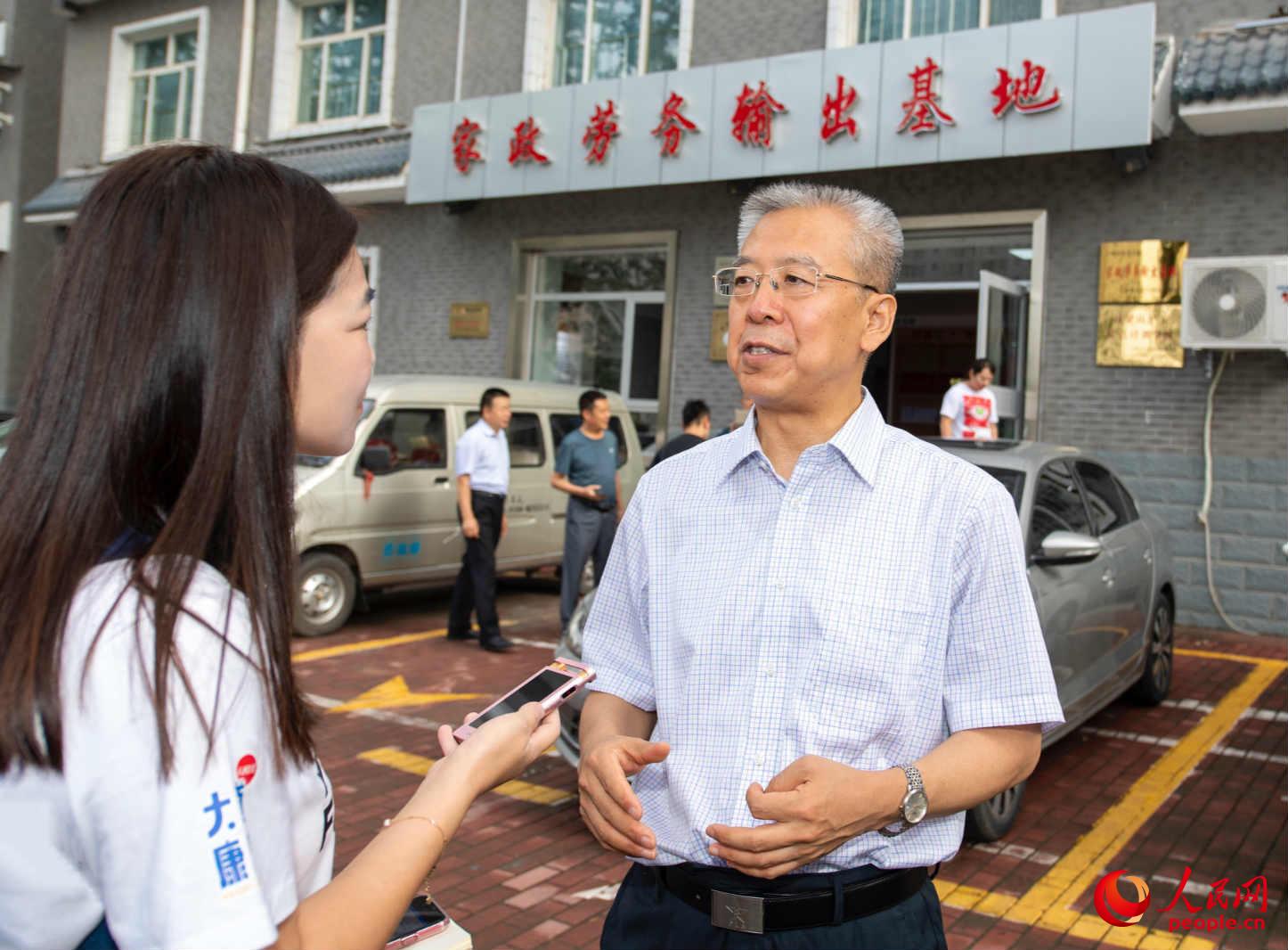 Li Zhengyin, secretary of the Communist Party of China Lyuliang Municipal Committee receives interview from People's Daily Online. (People's Daily Online/Weng Qiyu)