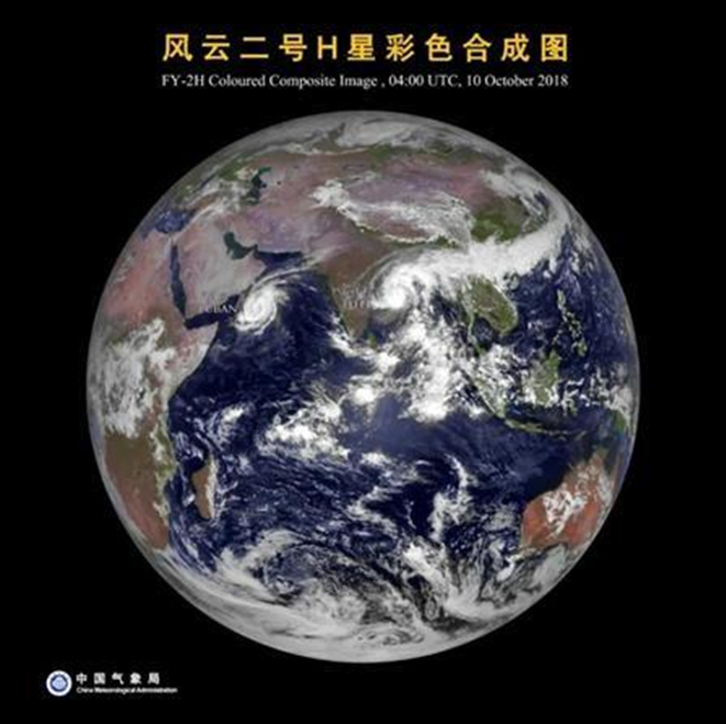 The colored composite image taken by FY-2H satellite. Photo: courtesy of the CMA