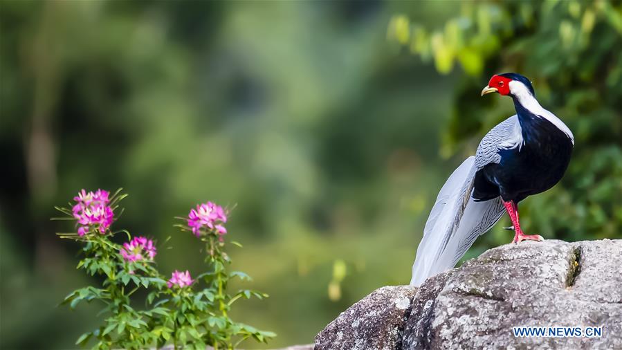 A silver pheasant sits on a rock at the Exiandong national nature reserve in Nanjing County, southeast China's Fujian Province, Oct. 14, 2020. (Xinhua/Mei Yongcun)