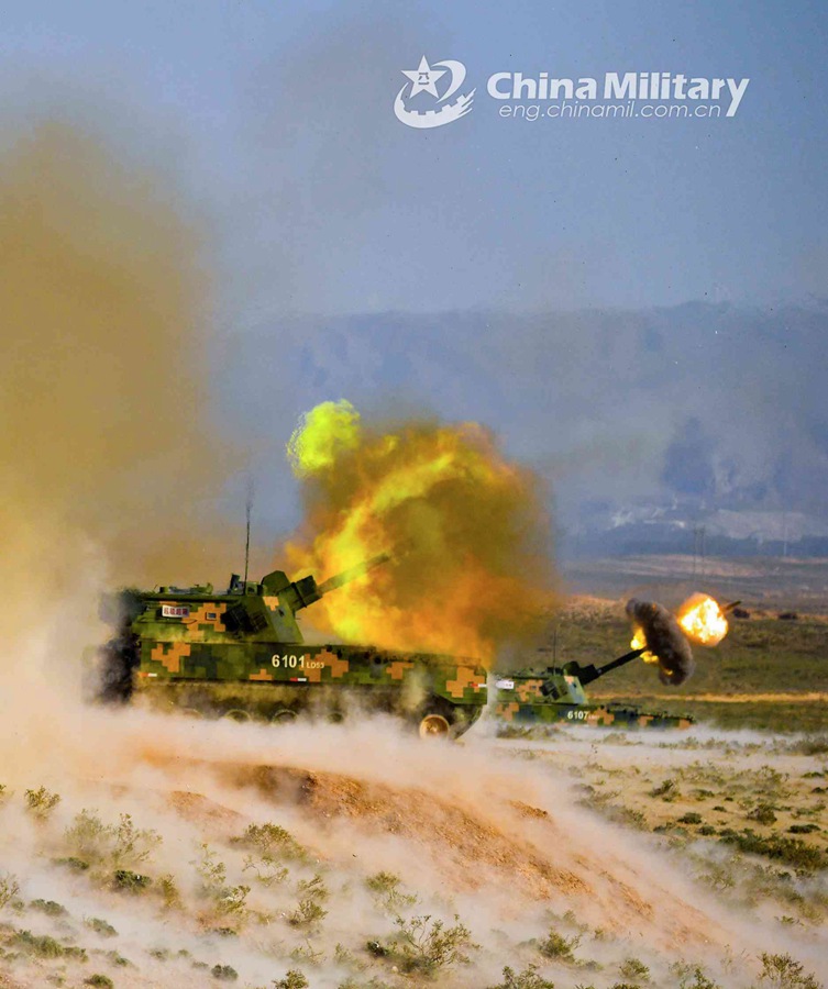 Armored vehicles attached to a combined arms brigade under the PLA 73rd Group Army fire at mock targets during a live-fire test on October 7, 2020. (eng.chinamil.com.cn/Photo by Liu Zhiyong)