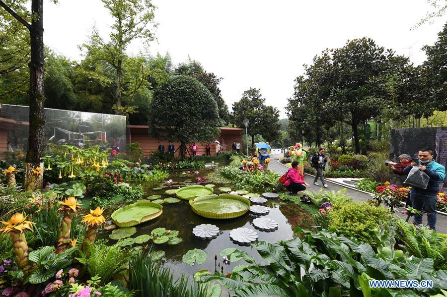 People visit a floral art expo in Chongqing, southwest China, Oct. 20, 2020. The expo kicked off on Tuesday in Chongqing and will last till Oct. 29, 2020. (Xinhua/Wang Quanchao)