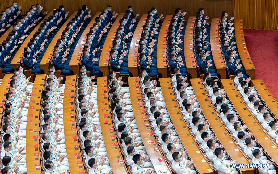 A meeting marking the 70th anniversary of the Chinese People's Volunteers entering the Democratic People's Republic of Korea to fight in the War to Resist U.S. Aggression and Aid Korea is held at the Great Hall of the People in Beijing, capital of China, Oct. 23, 2020. (Xinhua/Zhai Jianlan)