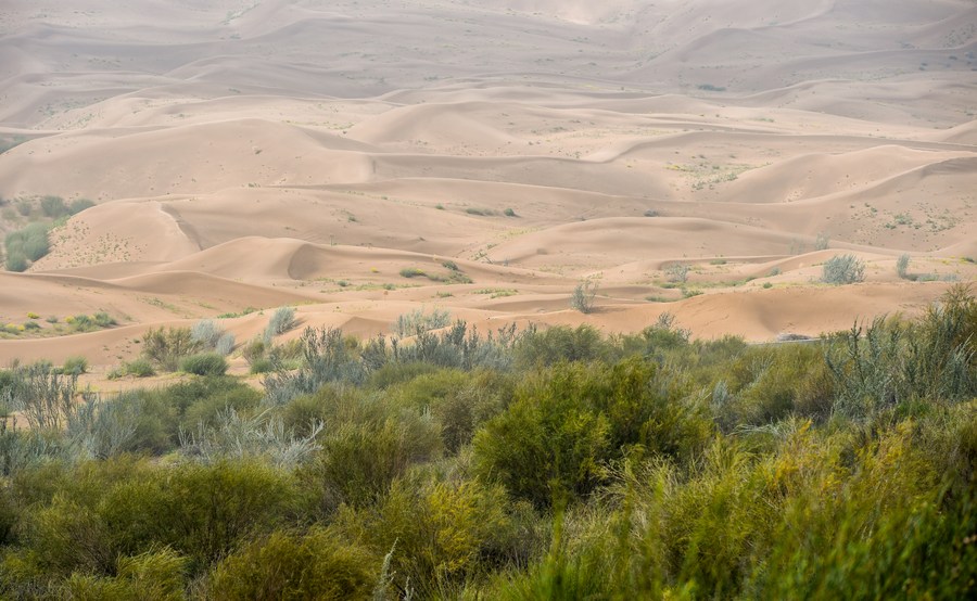 Photo taken on Sept. 14, 2020 shows a sand-fixing forest in Dalad Banner of Ordos of north China's Inner Mongolia Autonomous Region. (Xinhua/Lian Zhen)