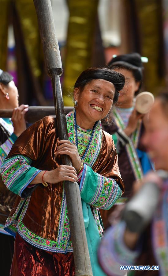People dance to greet advent of New Year in Ameiqituo Town, Guizhou