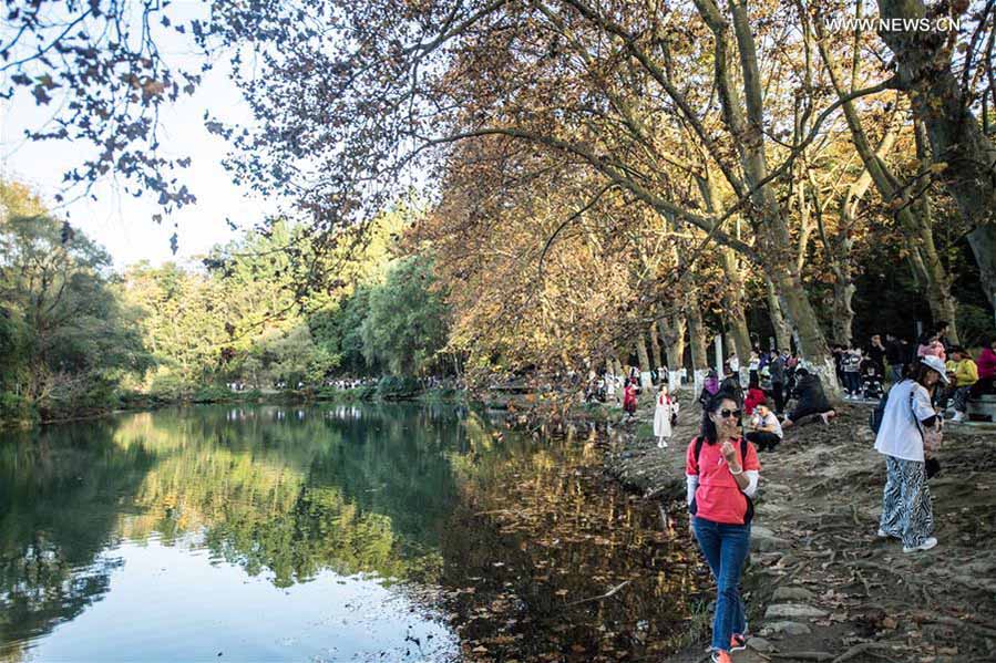 Tourists enjoy autumn scenery at Huaxi National City Wetland Park in Guiyang, capital of southwest China's Guizhou Province, Oct. 25, 2020. (Xinhua/Tao Liang)