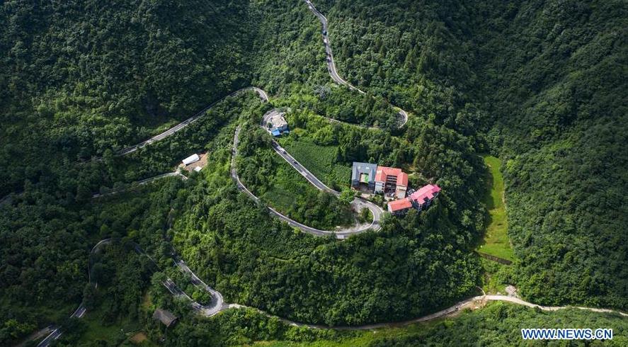 Aerial photo shows a countryside hostel in Shanbao community of Jiuba Township, Tongzi County, southwest China's Guizhou Province, July 21, 2020. (Xinhua/Tao Liang)
