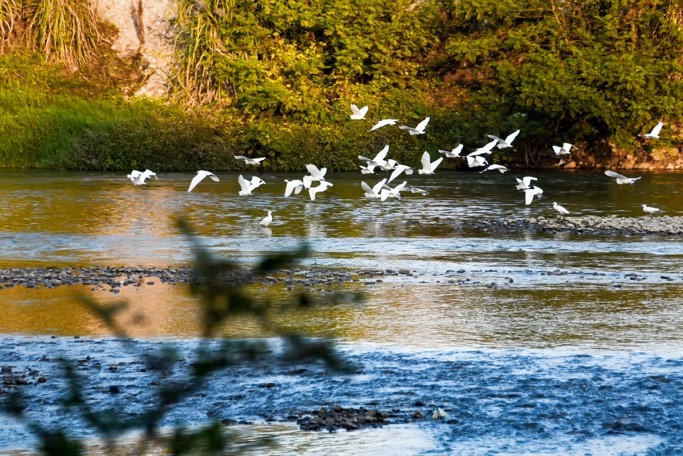 Photo taken on Oct. 19, 2019, shows migratory egrets in Suichuan county, Ji’an, East China’s Jiangxi Province. Photo by Xiao Yuanpan/People's Daily Online