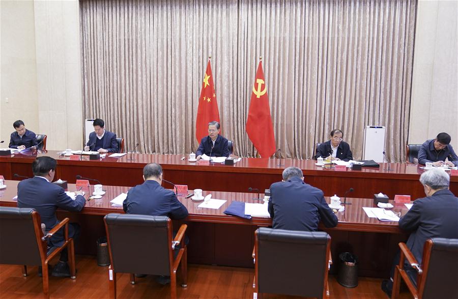 Zhao Leji, a member of the Standing Committee of the Political Bureau of the Communist Party of China (CPC) Central Committee and secretary of the CPC Central Commission for Discipline Inspection, presides over a meeting held by the Standing Committee of the CPC Central Commission for Discipline Inspection to study the guidelines of the 19th CPC Central Committee's fifth plenary session in Beijing, capital of China, Oct. 30, 2020. (Xinhua/Zhang Ling)