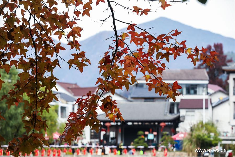Photo taken on Nov. 1, 2020 shows the scenery of red leaves at Zhinan Village of Taihuyuan Town in Hangzhou, east China's Zhejiang Province. (Xinhua/Xu Yu)