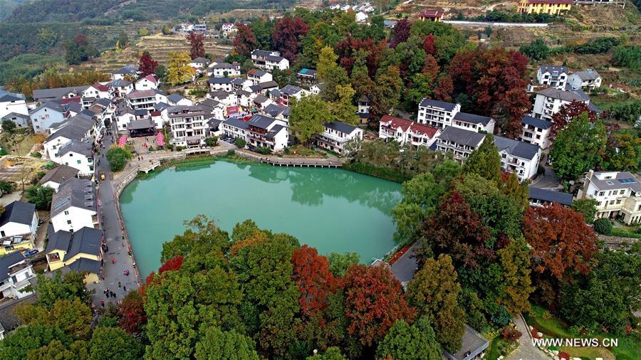 Aerial photo taken on Nov. 1, 2020 shows the scenery of Zhinan Village of Taihuyuan Town in Hangzhou, east China's Zhejiang Province. (Xinhua/Xu Yu)