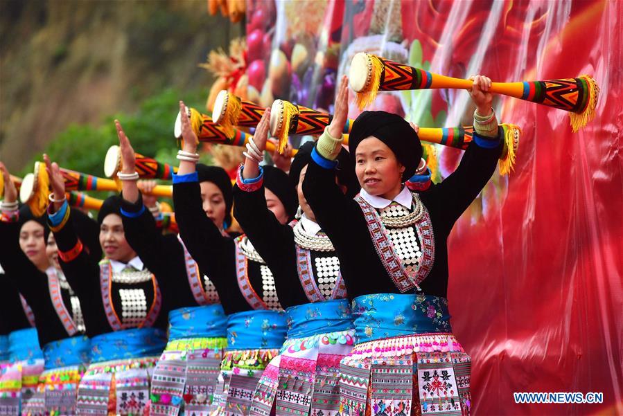 People dance to greet advent of New Year in Ameiqituo Town, Guizhou