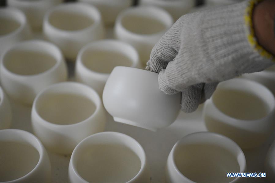 Artisan Xu Jinbao picks up a piece of freshly fired white porcelain teaware in Dehua County, Quanzhou, southeast China's Fujian Province, Oct. 20, 2020. A major porcelain-production center, Dehua in southeast China's Fujian Province has been making export porcelain since the Song Dynasty (960-1279 AD). The plain white porcelain crafted here was later dubbed "Blanc de Chine (White from China)" by the French and gained worldwide fame. As one of the traditional dragon kilns with long, thin and slightly sloped structures, the only remaining ancient kiln in Dehua is the Yueji Kiln, which has been burning continuously for more than 400 years. While the city preserves the ancient kiln, there are new-generation artisans seeking creativity on top of heritage. Xu Jinbao, who'd rather define himself as a "technical artisan", is among such innovators in the porcelain manufacturer circle of Dehua. After graduating from Shanghai Jiao Tong University with a degree in materials science, Xu returned to Dehua and set up a technology company which aims at finding improved ceramic solutions by making tweaks to the ingredients. Xu's ceramics products feature better heat-resistant, corrosion-proof and absorption performances than their older, traditional counterparts. He and colleagues have already debuted ceramic kettles which work on direct heat, and ceramic filters for water purifiers will be introduced soon. Like Xu Jinbao and his company, a growing number of Dehua-based porcelain enterprises have optimized production via technical upgrades, securing orders with a continuous supply of state-of-the-art, quality "Blanc de Chine" to global clients. (Xinhua/Song Weiwei)