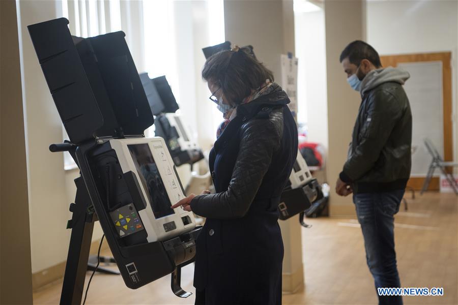 Voters fill in their ballots at a polling station in Washington, D.C., the United States, on Nov. 3, 2020. Voting on Election Day is underway across the United States, as the COVID-19 pandemic is raging on and political divide running deeper. (Xinhua/Liu Jie)