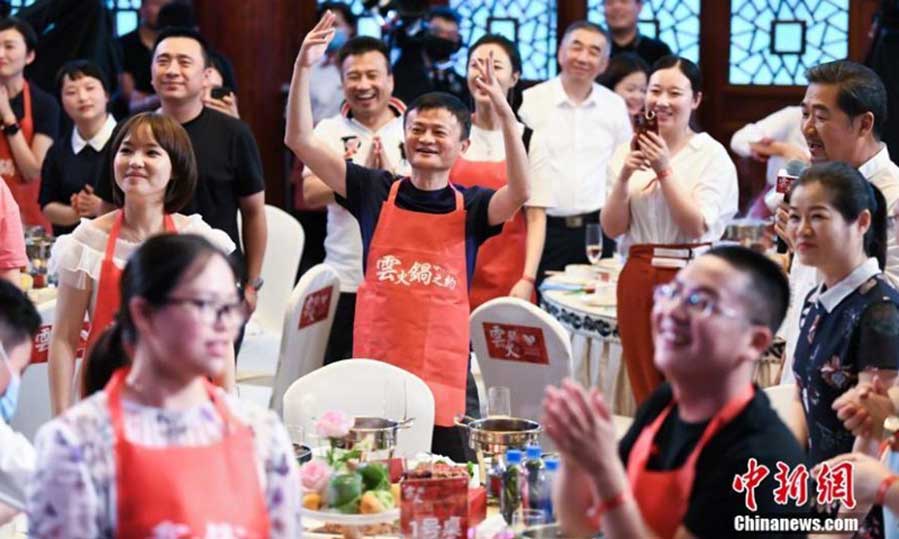 Jack Ma, founder of Alibaba Group, invites 66 medical workers to a hot pot restaurant in Hefei, Anhui Province on June, 6, 2020. These Anhui medical workers had helped fight the #COVID19 in Hubei Province. (Photo: China News Service)