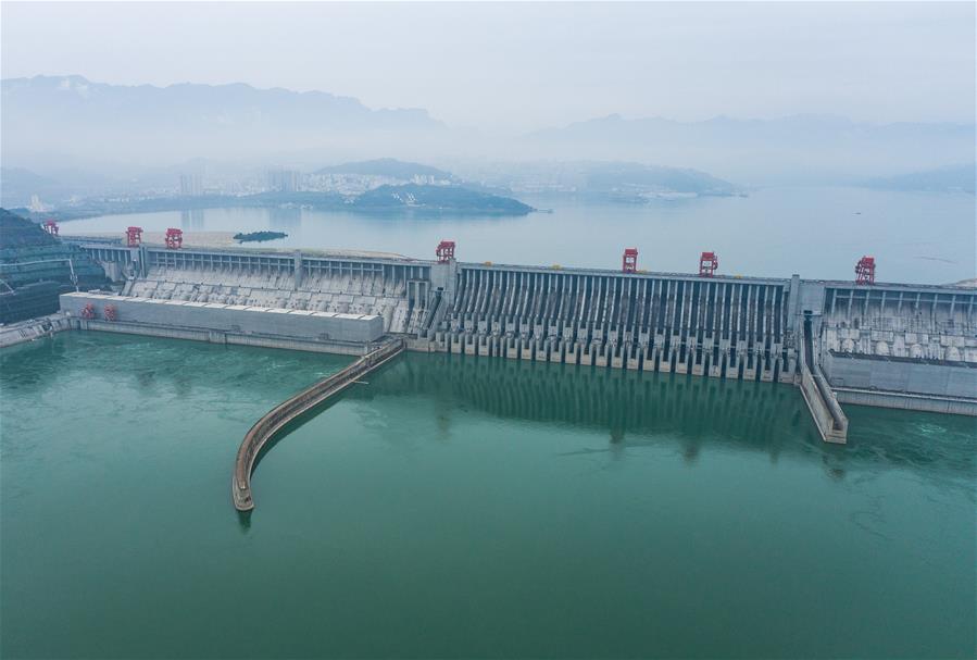 Aerial photo taken on Nov. 1, 2020 shows the Three Gorges Dam in central China's Hubei Province. The Three Gorges project, which manages the flow of water on China's Yangtze River, has been officially certified as complete and fully functioning, authorities announced on Sunday. China's Ministry of Water Resources and the National Development and Reform Commission announced the official full completion of the project's construction, saying it has met all design requirements, has a good overall performance, and fulfills the key roles of flood control, electricity generation, shipping and water-resource utilization. (Xinhua/Xiao Yijiu)
