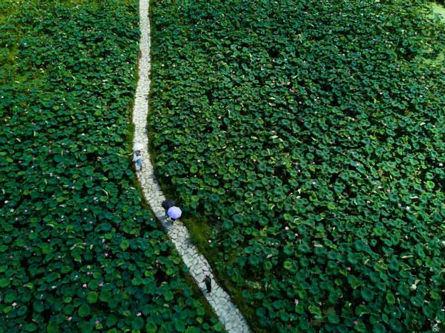 Visitors admire the lotus fields in Xiuzhu village, Jianning county, Sanming. SONG WEIWEI/XINHUA