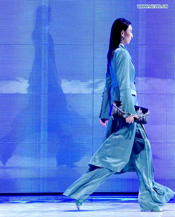 A model presents a creation of NAERSI during the China Fashion Week in Beijing, capital of China, Nov. 1, 2020. (Xinhua/Chen Jianli)