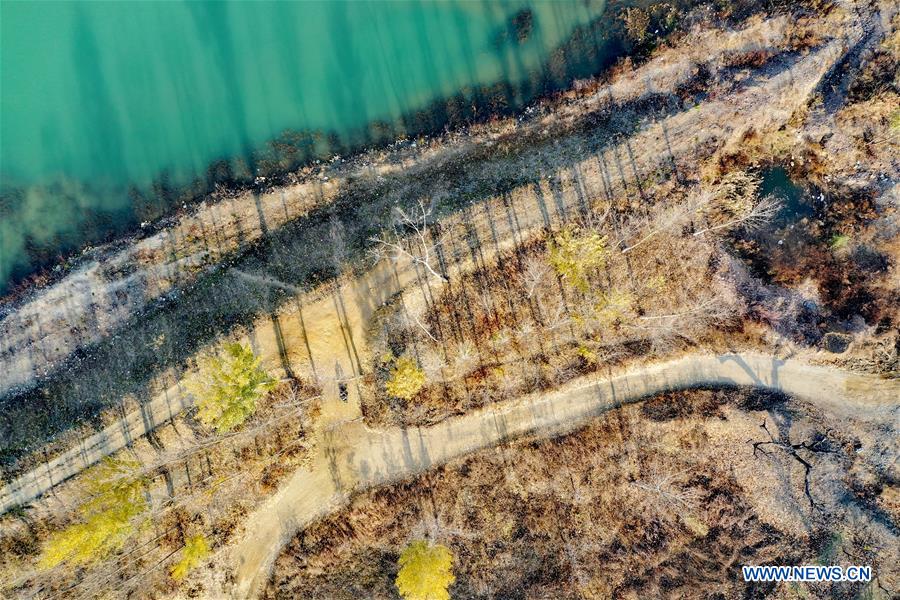 Aerial photo taken on Nov. 5, 2020 shows the view of a park along the Changhe River in Qianxi County, north China's Hebei Province. The park was transformed from a former mining area by renovating the river channel and improving the ecological environment. (Xinhua/Xing Guangli)