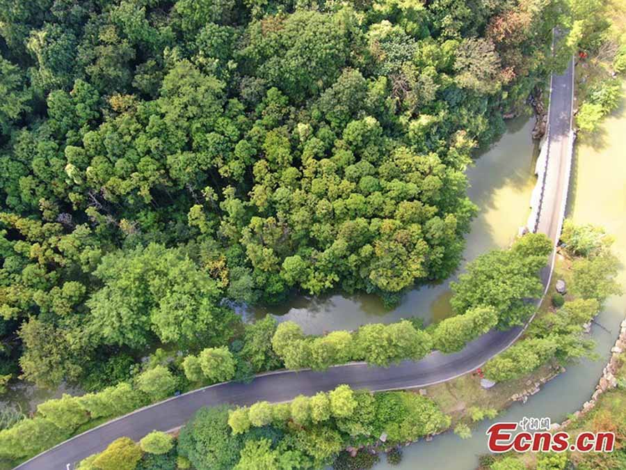 This aerial photo shows beautiful Nantong City in East China's Jiangsu Province. Nantong has been fully implementing ecological protection measures along the Yangtze River. Mountains have become greener and rivers cleaner following the efforts. (Photo: China News Service/Xu Congjun)
