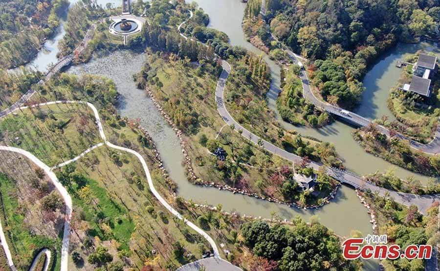 This aerial photo shows beautiful Nantong City in East China's Jiangsu Province. Nantong has been fully implementing ecological protection measures along the Yangtze River. Mountains have become greener and rivers cleaner following the efforts. (Photo: China News Service/Xu Congjun)