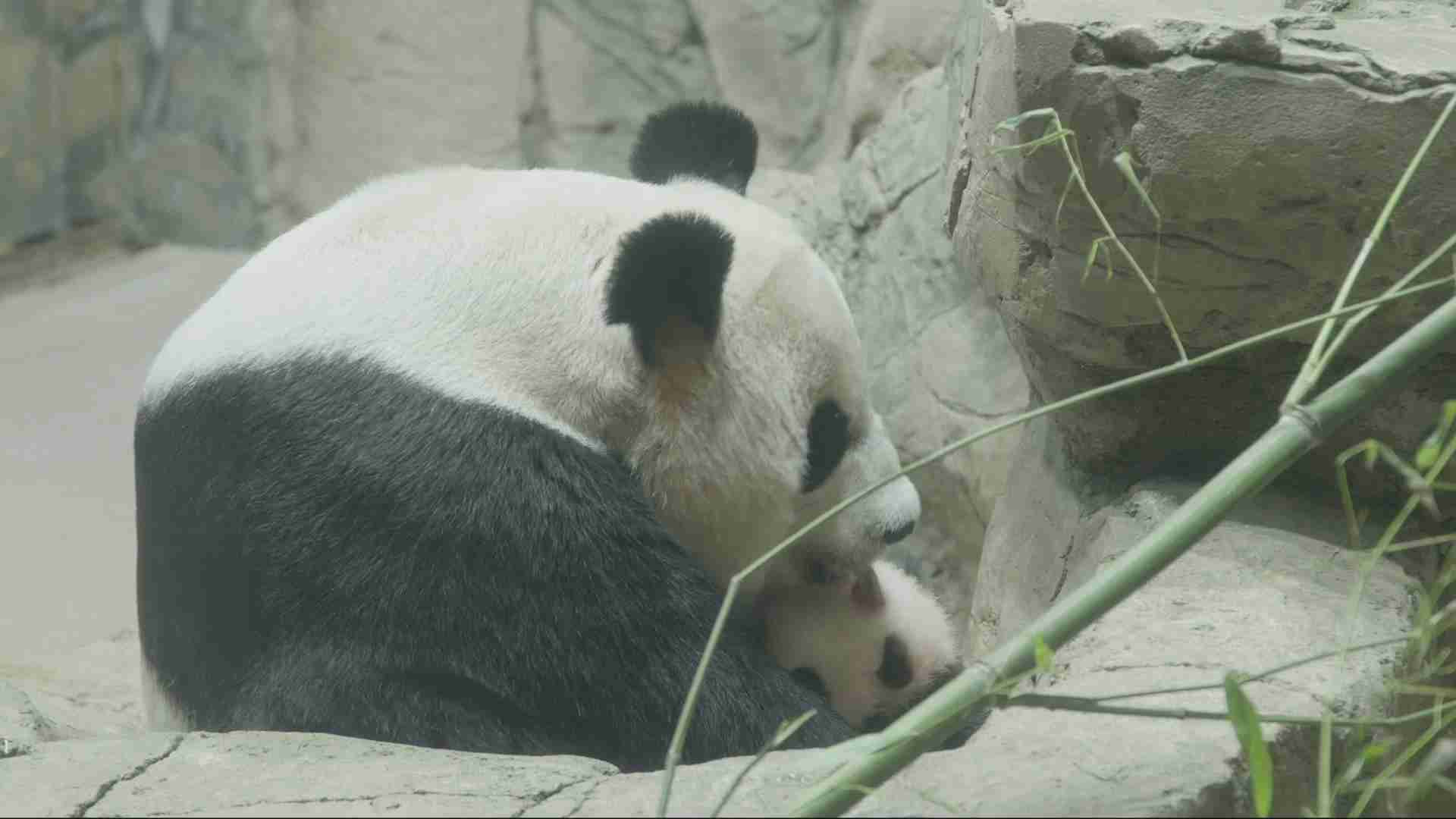 Photo: Giant panda cub Xiao Qiji and his mother Mei Xiang.