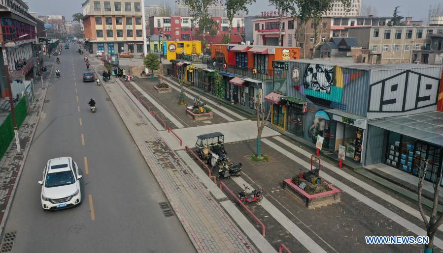 Aerial photo taken on Nov. 29, 2020 shows a commercial street entitled "Xi Da Jing 1919" in Zhongzhan District of Jiaozuo City, central China's Henan Province. Wangfeng Mine, located in Zhongzhan District of Jiaozuo City, was exploited in 1919 and has a history of over 100 years. In recent years, local authorities have transformed the century-old mine into a tourism and cultural park with industrial elements to make full use of the industrial relics. (Photo by Feng Xiaomin/Xinhua)