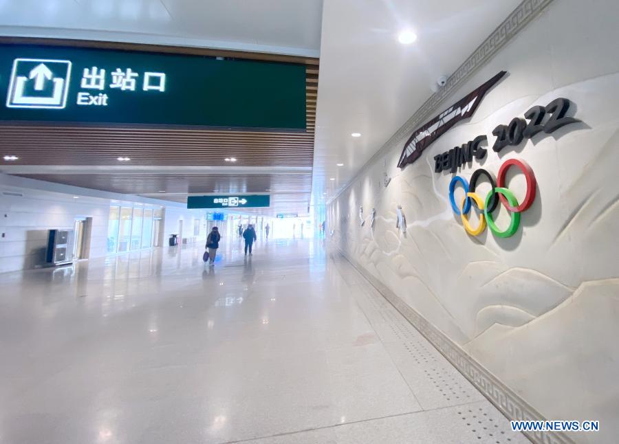 Phone photo taken on Dec. 1, 2020 shows an interior view of the new station building of the Yanqing Railway Station in Yanqing District of Beijing, capital of China. The Yanqing line, one of the major transport infrastructure projects for the 2022 Beijing Winter Olympics, was officially put to operation along with the new station building of the Yanqing Railway Station on Tuesday. The 9.33-kilometer line with a designed speed of 160 kilometers per hour provides a much faster connection between Yanqing and downtown Beijing. (Xinhua)