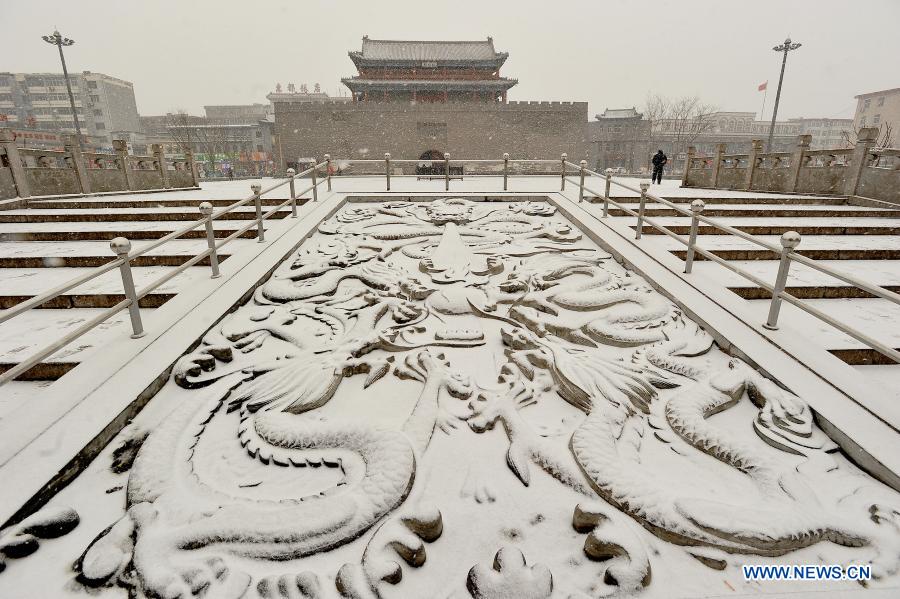 Photo taken on Dec. 6, 2020 shows a view of snow-covered Xuanhua ancient city in Zhangjiakou, north China's Hebei Province. (Photo by Chen Xiaodong/Xinhua)