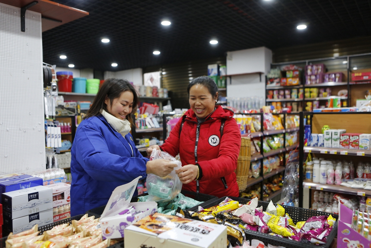 Customers buy foods in a supermarket in Mujie village, Guizhou province, on Nov 25, 2020. [Photo/Xinhua]