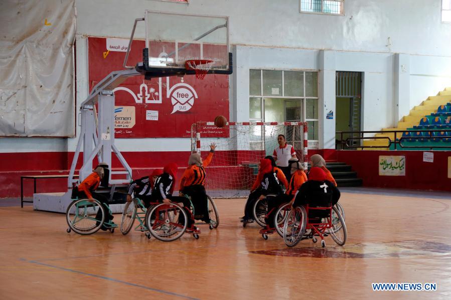 SANAA, Dec. 9 (Xinhua) -- Eshwaq Al-Maarshy, a young woman in Yemen, lost her right leg in a landmine explosion ten years ago. Since then, she had been sulking in frustration and anger for a long time until she found wheelchair basketball.