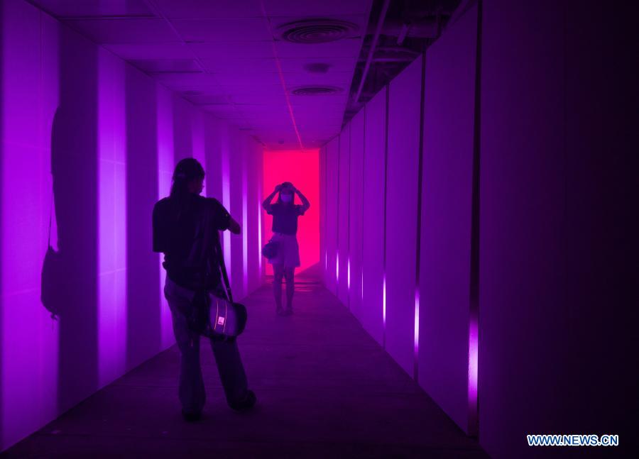 Tourists visit the "Awakening Bangkok" lighting installation fest in Bangkok, Thailand, Dec. 15, 2020. (Xinhua/Zhang Keren)