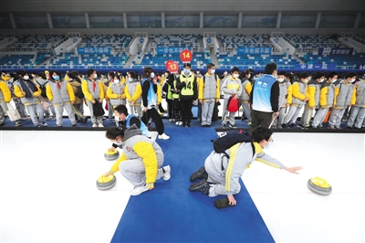 More than 800 junior high school students came to the curling venue for the Beijing 2022 Olympic Winter Games on Dec. 21 to experience curling on four standard tracks.