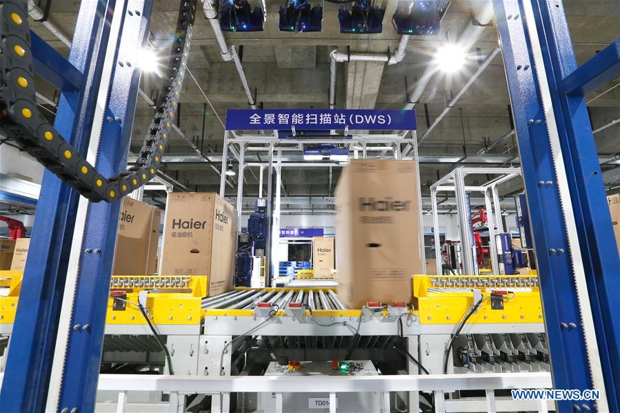 A view of an intelligent warehouse of a logistics industry park in Qingdao, east China's Shandong Province.  (Photo/Xinhua)