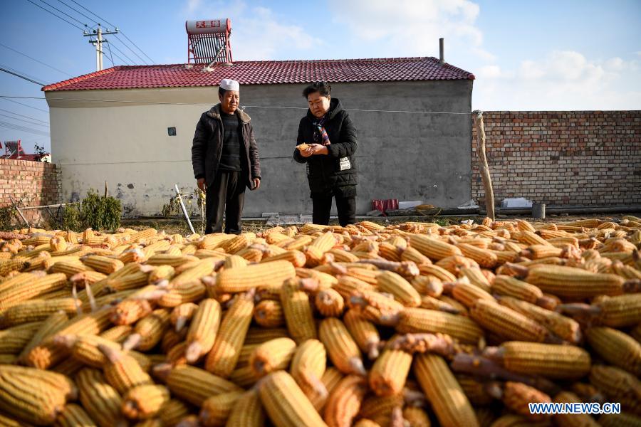 Ding Haiyan (L) visits Yang Youquan''s family, once an officially registered household in poverty, in Hejiayuan Village of Xihaigu in northwest China''s Ningxia Hui Autonomous Region, Oct. 28, 2020. Xihaigu, a largely mountainous region in northwest Ningxia, was once inflicted by deep poverty and labeled the "most unfit place for human settlement" by the United Nations in the 1970s due to land reclamation, drought, and a fragile ecological environment. On Nov. 16, 2020, Xihaigu historically bid farewell to absolute poverty, during which "she power" played an indispensable role. Ding Haiyan, 55, is chairwoman of the trade union of water supplies bureau of Wuzhong City in Ningxia. She transferred to Hejiayuan Village in Yuwang Township of draught-haunted county of Tongxin in central Ningxia in 2015 starting her new career as a poverty alleviation cadre. To Ding''s great disappointment, most villagers there were seniors or the disabled who had no access to paved roads and electric power for industrial purposes, and little confidence in her will and power. Despite these, Ding insisted on making door-to-door visits to get her head around the basic situation there. She came up with a two-pillar strategy to simultaneously improve villagers'' income and infrastructure in the village. She also tailored individual poverty-alleviation plans for each household in the village. Started with livestock breeding, villagers had more and more confidence in Ding as they saw steadily increasing income. Ding also managed to multiply the villagers'' sources of income by encouraging production of specialty grains like millet and buckwheat. Thanks to her efforts, a paved road was also accomplished to bring output of the village to wider markets. Looking at an almost ready canteen for senior citizens, the last one of her promises to the villagers in Hejiayuan, Ding admitted that she occasionally shed tears due to the difficulties she had to confront, but she would never forget the villagers'' eyes with expectation and her responsibility for them. (Xinhua/Yang Zhisen)