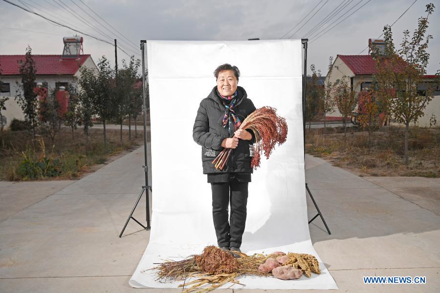 Ding Haiyan poses for a portrait photo in Hejiayuan Village of Xihaigu in northwest China''s Ningxia Hui Autonomous Region, Oct. 28, 2020. Xihaigu, a largely mountainous region in northwest Ningxia, was once inflicted by deep poverty and labeled the "most unfit place for human settlement" by the United Nations in the 1970s due to land reclamation, drought, and a fragile ecological environment. On Nov. 16, 2020, Xihaigu historically bid farewell to absolute poverty, during which "she power" played an indispensable role. Ding Haiyan, 55, is chairwoman of the trade union of water supplies bureau of Wuzhong City in Ningxia. She transferred to Hejiayuan Village in Yuwang Township of draught-haunted county of Tongxin in central Ningxia in 2015 starting her new career as a poverty alleviation cadre. To Ding''s great disappointment, most villagers there were seniors or the disabled who had no access to paved roads and electric power for industrial purposes, and little confidence in her will and power. Despite these, Ding insisted on making door-to-door visits to get her head around the basic situation there. She came up with a two-pillar strategy to simultaneously improve villagers'' income and infrastructure in the village. She also tailored individual poverty-alleviation plans for each household in the village. Started with livestock breeding, villagers had more and more confidence in Ding as they saw steadily increasing income. Ding also managed to multiply the villagers'' sources of income by encouraging production of specialty grains like millet and buckwheat. Thanks to her efforts, a paved road was also accomplished to bring output of the village to wider markets. Looking at an almost ready canteen for senior citizens, the last one of her promises to the villagers in Hejiayuan, Ding admitted that she occasionally shed tears due to the difficulties she had to confront, but she would never forget the villagers'' eyes with expectation and her responsibility for them. (Xinhua/Wang Peng)