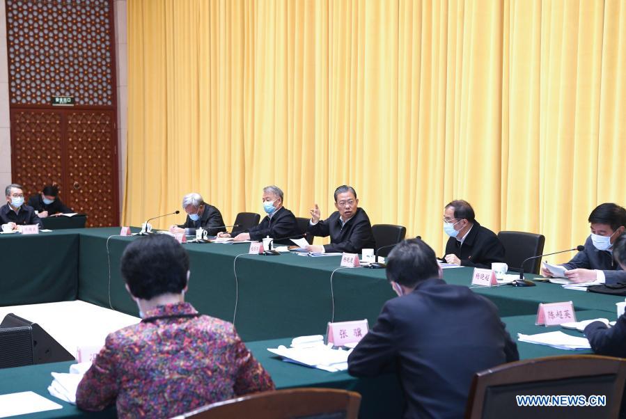 Zhao Leji, a Standing Committee member of the Political Bureau of the Communist Party of China (CPC) Central Committee and head of the central leading group on disciplinary inspection, visits the Ministry of Transport to learn about inspection-related work and hosts a symposium in Beijing, capital of China, Dec. 30, 2020. (Xinhua/Rao Aimin)