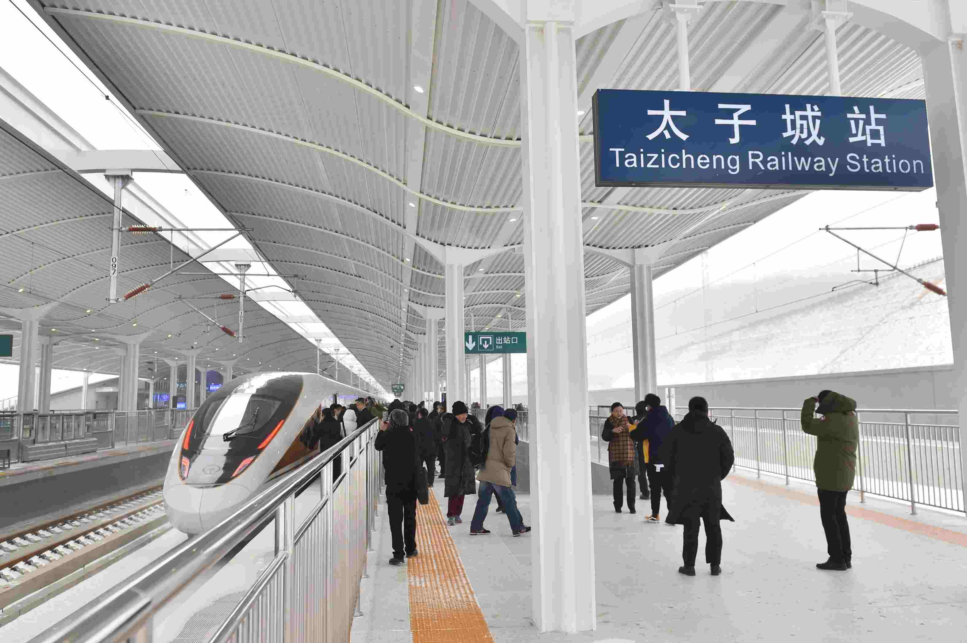 A high-speed train arrives at Taizicheng Station in Chongli District of Zhangjiakou, north China's Hebei Province, Dec. 30, 2019. (Xinhua/Peng Ziyang)