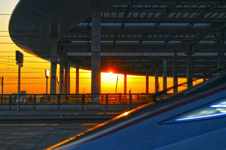 Photo taken on Jan. 1, shows a Fuxing bullet train is ready to leave Xiong’an Railway Station in Xiong’an New Area, north China’s Hebei province, in the morning sunshine of the first day of the year 2021. (Photo by Sun Lijun/People’s Daily Online)