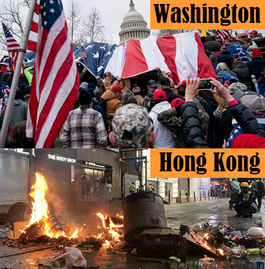 What happened in Hong Kong is akin to the Capitol Hill's assaulting that participants in both riots have violated the law and posed a dangerous threat to the constitutional order. How come one be praised as a "pro-democracy protest" and one be defined as insurrection?