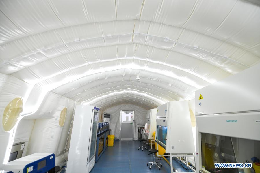 | Photo shows the "Huoyan" nucleic acid test laboratory in Harbin, northeast China''s Heilongjiang Province, Jan. 30, 2021. The "Huoyan" laboratory will soon be put into use to fight the COVID-19 pandemic in Harbin. (Xinhua/Wang Song) |