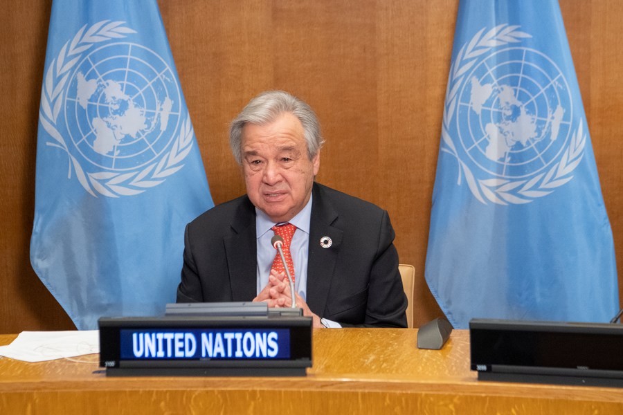 United Nations Secretary-General Antonio Guterres addresses the One Planet Summit at the UN headquarters in New York, Jan. 11, 2021. (UN/Handout via Xinhua)